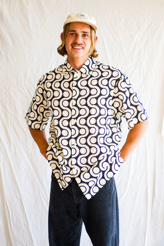 Men's Button up shirt- The Classic in Black & White Jazz