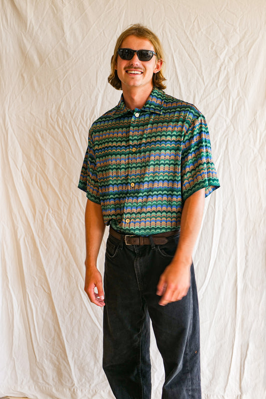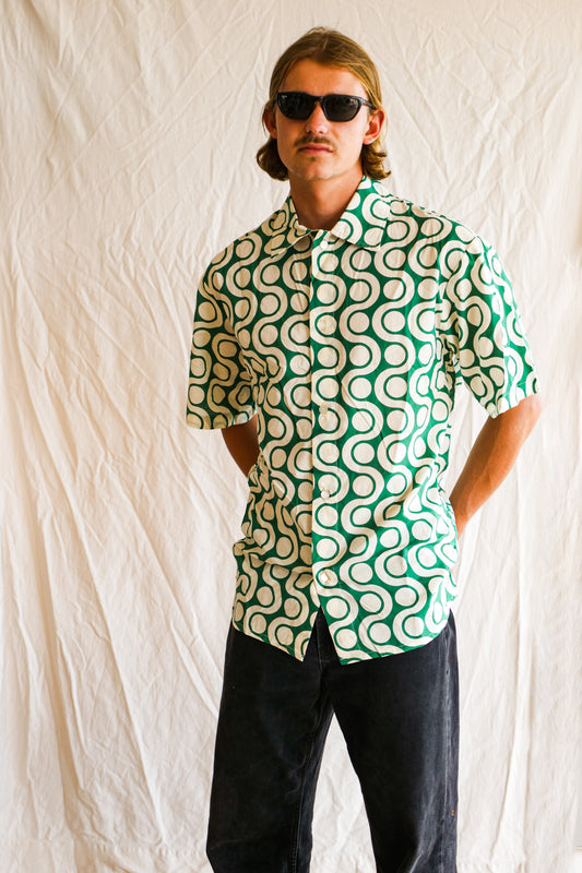 Men's Button up shirt- The Classic in Green & White Jazz
