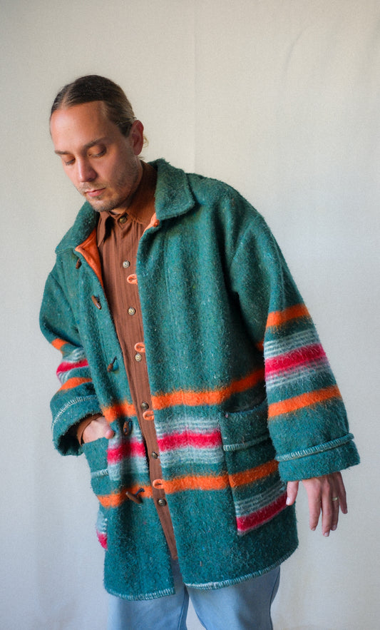 It’s not just any jacket; it’s a blanket jacket, woven with history, shaped by tradition, and worn by those who move between worlds.